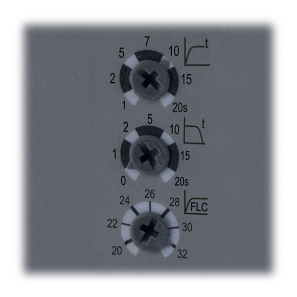 RSGD-serien kommer med innebygget bypass, noe som gir minimalt med varmetap under drift. Du kan velge utførelse med eller uten elektronisk vern, og den har overvåkning av fase rekkefølgen (kan enkelt programmers bort) og fasebrudd. I tillegg er den overbelastnings- og temperaturbeskyttet. Velg mellom manuell re-sett eller automatisk re-sett av alarm. Statusindikering i front med LED indikatorer.