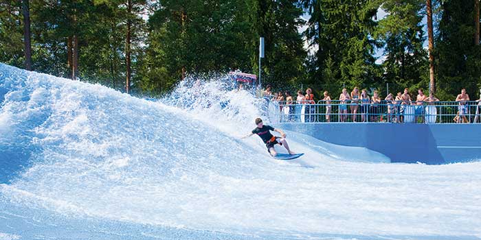 Midt i furuskogen i Bø Sommarland finner du «Flow Rider», som er en av verdens største kunstige surfebølger. Her du har mulighet til å boltre deg med brett på bølgetoppen, og dette er midt i blinken for aktive snowboardere og skatere!