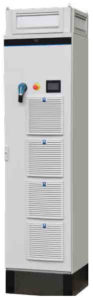 Vannmengden i Flow Rider styres av to fem-tonns pumper, som på fullt pumper ut 360.000 liter vann i minuttet. Det er mer enn minstevannføringen i Bø-elva sommerstid, og et monster som må styres for at den skal være en attraksjon for alle. Carlo Gavazzi AS har levert frekvensomformere på 470KW hver som hastighetsregulerer monsterpumpene. Frekvensomformerene er av typen Power Drive MD2S fra vår leverandør Nidec/Control Techniques, som vi har hatt en samarbeidsavtale med nå i over 15 år. Frekvensomformerene står utendørs i sesongen. Dette krever en høy IP-grad, så utførelsen er i IP54 gulvskap med tilpasset sokkel. Styringen skjer via Modbus over Ethernet, og får sine kommandoer fra HMI-panelet.