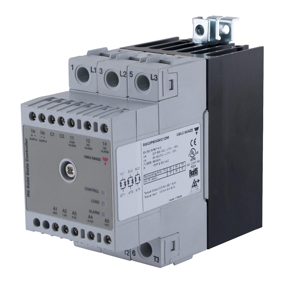 For større 3-faset laster har vi seriene RGC2A og RGC3A som har løsninger opp til 75A.