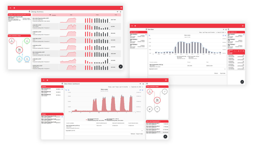Takket være alt-i-ett-arkitekturen er EMS svært allsidig: Den kan fungere som en rask og pålitelig IIoT-energimåler, eller som et komplett energiovervåkingssystem. Det innebygde web-grensesnittet gir flere brukere tilgang til dashbord, genererer rapporter og analyserer data i sanntid – fra hvilken som helst enhet.