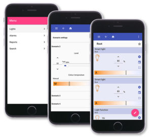 - Lux-sensorer dimmer, tenner eller slukker lys i henhold til nivået på dagslyset.