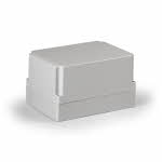 Ensto Cubo D kapsling i ABS med glatte sider. Grå underdel og grått deksel. 80x120x56. Beskyttelsesgrad IP66. Slagfasthet IK06. Mer info