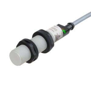 Kapasitiv giver med LED-bargraf indikering, M18, PNP/NPN, valgbar NO/NC, skjermet, koblingsavstand 8mm, 10-40VDC, kunststoff, Ecolab, 2m fast kabel. Elnummer: 4316091