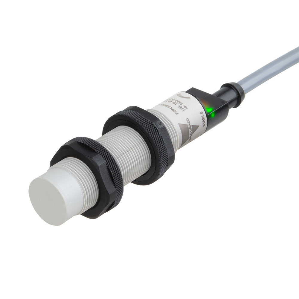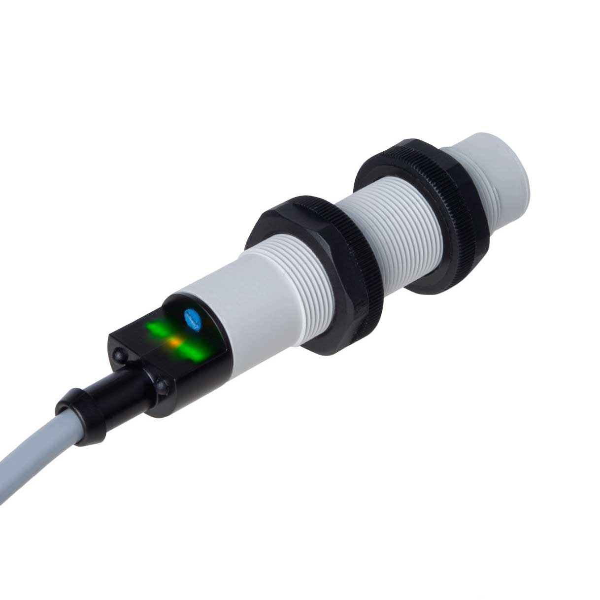 Kapasitiv giver med LED bargraf indikering av signalstyrken på detekteringen. PNP/NPN. Valgbar NO/NC. M18 i kunststoff hus (PBT). Uskjermet med koblingsavstand 12mm. 2m fast kabel. Høy beskyttelsesgrad IP69K med ECOLAB godkjenning. Bar graph indikeringen gjør denne svært brukervennlig med hensyn til justering av følsomhet og kontroll av driftsstatus.Det er i tillegg mulig å konfigurere denne giveren ved hjelp av IO-link.