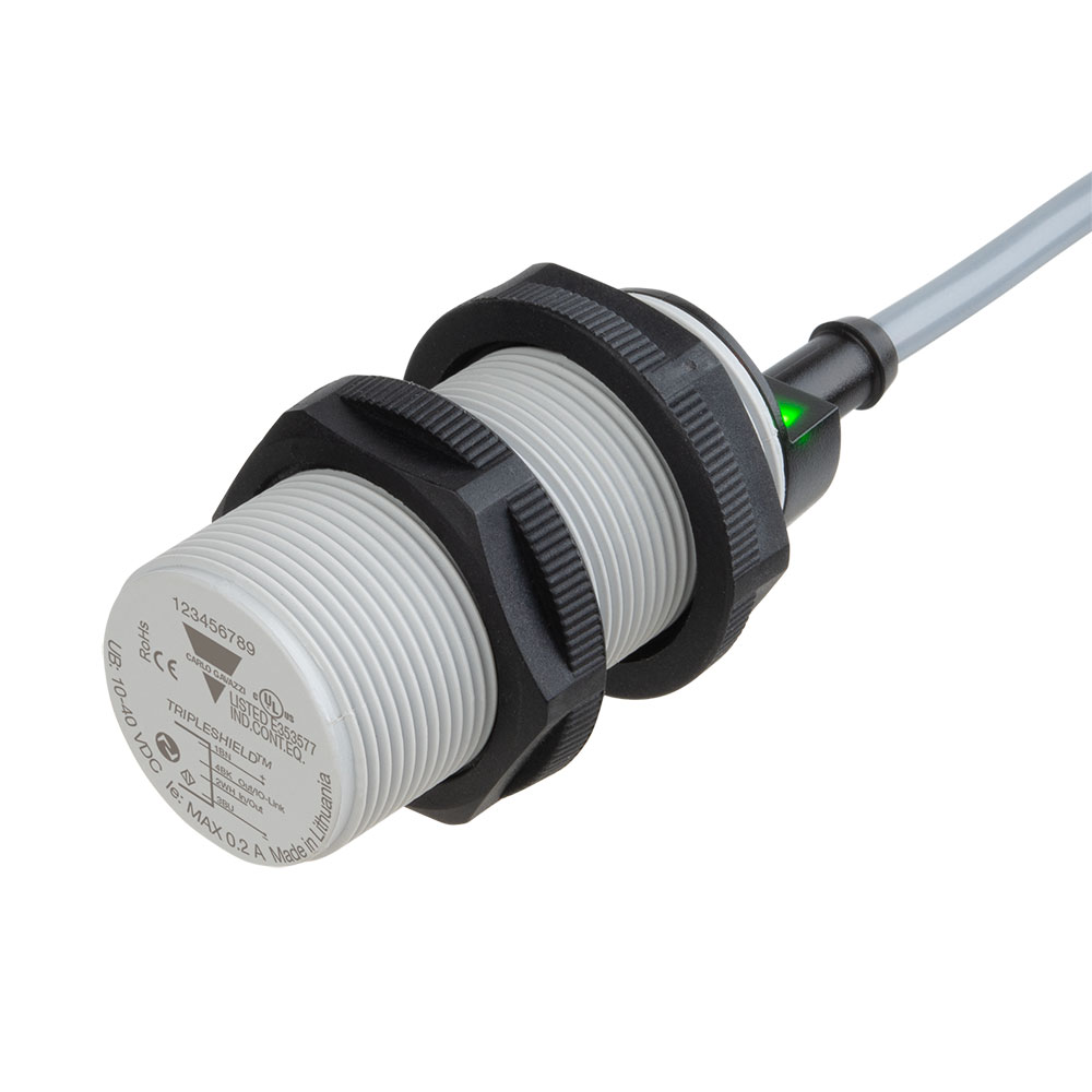 Kapasitiv giver med LED bargraf indikering av signalstyrken på detekteringen. PNP/NPN. Valgbar NO/NC. M30 i kunststoff hus (PBT). Skjermet med koblingsavstand 16mm. 2m fast kabel. Høy beskyttelsesgrad IP69K med ECOLAB godkjenning. Bar graph indikeringen gjør denne svært brukervennlig med hensyn til justering av følsomhet og kontroll av driftsstatus.Det er i tillegg mulig å konfigurere denne giveren ved hjelp av IO-link.