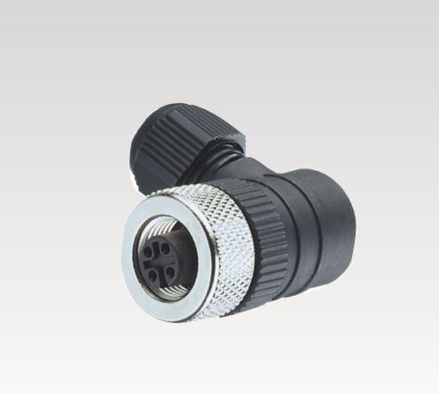 Plugg med 90° monteringsvinkel. Hustype M12 DC. Uten kabel.