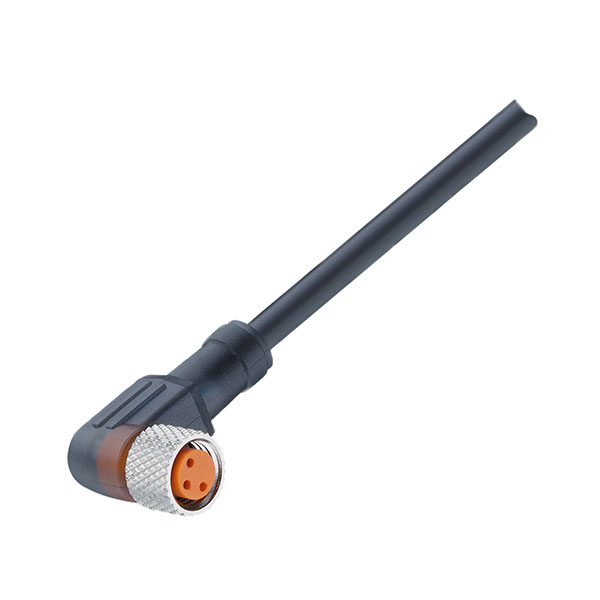 Plugg med kabel. 90° monteringsvinkel. Hustype M8 DC. 2m kabel (PVC) i 4-leder utførelse. Beskyttelsesgrad IP67 . .