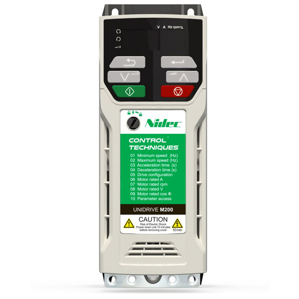 Unidrive M400 er en allsidig frekvensomformer med PLS funksjonalitet (Codesys) og STO (Safe Torqe Off) klassifisert SIL3. Den er robust og ideell for et bredt spekter av motorstyrings applikasjoner for åpen loop. Eksempelvis vifter, pumper, kompressorer, transportbånd og miksere. Unidrive M400 for 230VAC fåes i størrelsene 0,25kW – 75kW. Unidrive M400 for 400VAC fås i størrelsene 0,37kW – 132kW. Beskyttelsesgrad IP20. Fabrikat: Emerson/Control Techniques.