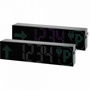 Display til parkeringsystem med mulighet for 4 siffer og 2 stk. valgfrie symboler. Car Park displayet har RGB LED og forsyningsspenning er 24VDC