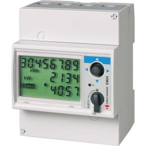EM24 er en 3-fase kWh måler/energianalysator som kan benyttes både i enkle og avanserte anvendelser. Målingene presenteres i et LCD display.