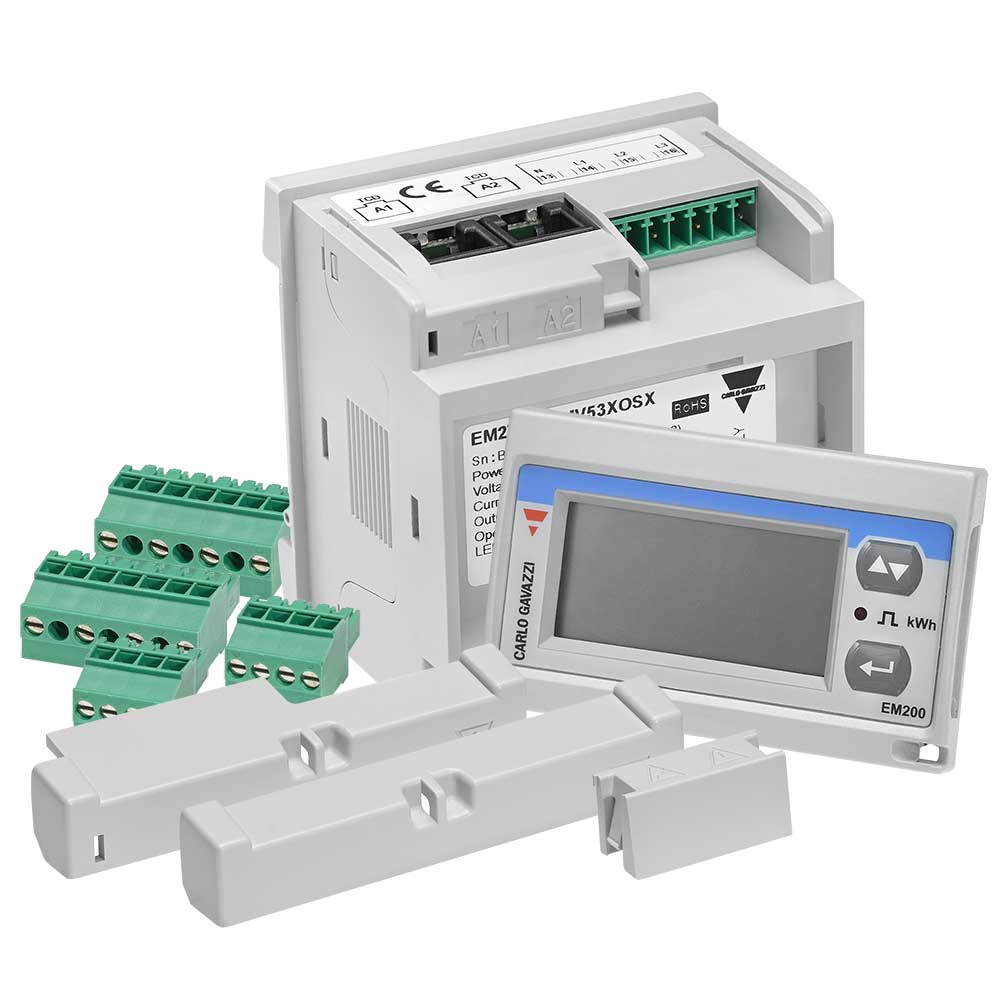 EM27172DMV53XOSX Energimåler/forbruksmåler med 2 uavhengige målekretser. For bruk med sett av delbare strømtransformatorer med fast kabel med plugg, type RJ12 (6P6C). Strømtransformatorer leveres med forskjellige kabellengder og utførelser inntil 630A. Utviklet for enkel, rasjonell og tidsbesparende montasje. Kan alternativt måle på 2 stk. 3-fase eller 6 stk. 1-fase laster med separate kWh tellere.