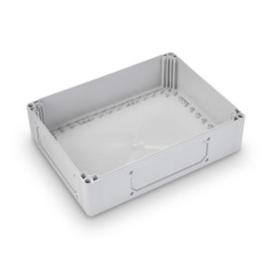 Ensto Cubo C underdel i glassfiberarmert polykarbonat med flens knockouts/utsparringer. Grå. 400x600x100