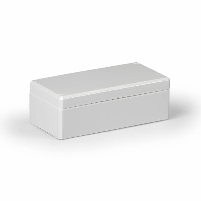 Ensto Cubo D kapsling i Polykarbonat med glatte sider. Grå underdel og grått deksel. 80x160x56. Beskyttelsesgrad IP66. Slagfasthet IK08.