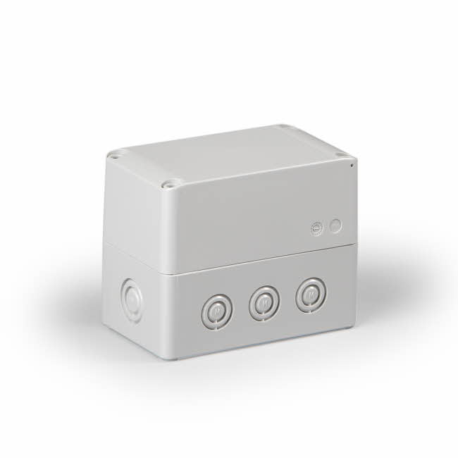 Ensto Cubo S kapsling i glassfiberarmert polykarbonat med PG knock-outs/utsparringer. Størrelse 75x125x100mm. Grått deksel i polykarbonat. Beskyttelsesgrad IP66. Slagfasthet IK08. Kapslingene har spor i underdelen beregnet på kretskort, og skrufester for DIN-Skinne.