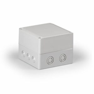 Ensto Cubo S kapsling i glassfiberarmert polykarbonat med PG knock-outs/utsparringer. Størrelse 125x125x100mm. Grått deksel i polykarbonat. Beskyttelsesgrad IP66. Slagfasthet IK08. Kapslingene har spor i underdelen beregnet på kretskort, og skrufester for DIN-Skinne.