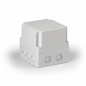 Ensto Cubo S kapsling i glassfiberarmert polykarbonat med PG knock-outs/utsparringer. Størrelse 125x125x125mm. Grått deksel i polykarbonat. Beskyttelsesgrad IP66. Slagfasthet IK08. Kapslingene har spor i underdelen beregnet på kretskort, og skrufester for DIN-Skinne.