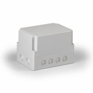 Ensto Cubo S kapsling i glassfiberarmert polykarbonat med PG knock-outs/utsparringer. Størrelse 125x175x125mm. Grått deksel i polykarbonat. Beskyttelsesgrad IP66. Slagfasthet IK08. Kapslingene har spor i underdelen beregnet på kretskort, og skrufester for DIN-Skinne.