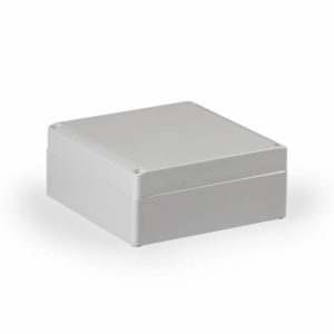Ensto Cubo S kapsling i glassfiberarmert polykarbonat med glatte sider. Størrelse 175x175x75mm. Grått deksel. Beskyttelsesgrad IP66. Slagfasthet IK08.