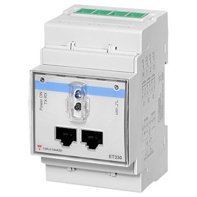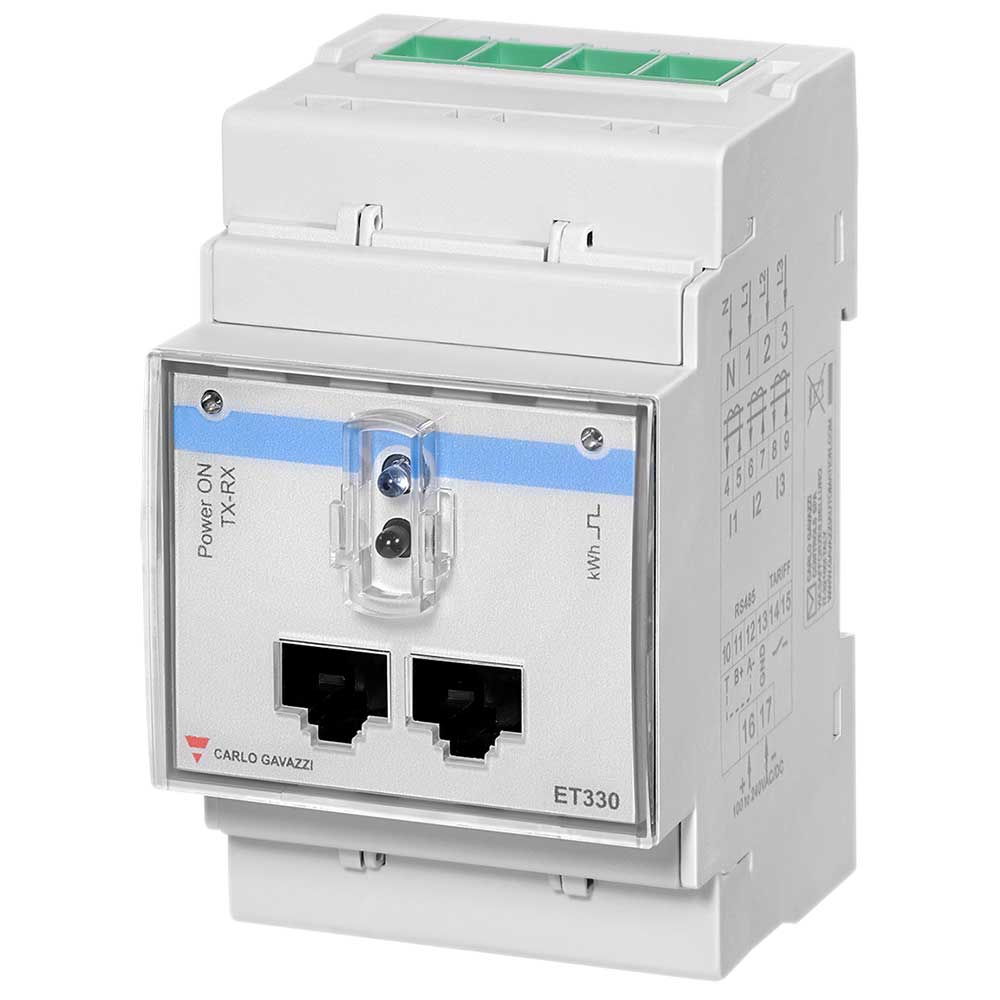 ET330DINAV53HS1X 3-fase energiforbruksmåler for måling via strømtransformatorer. Uten display. RS485 Modbus grensesnitt og optisk port.Tilgang til alle relevante måleverdier som strøm, spenning, aktiv effekt, reaktiv effekt, cos. phi, aktiv energi (kWh), reaktiv energi (kVArh) osv. Modulærutførelse med byggebredde 3-moduler. Energi transduser.