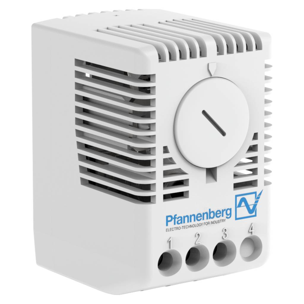 Termostat med justebart temperaturområde 0-60°C og vekselkontakt. IP20. DIN-skinne montering. Pfannenberg.