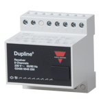 Dupline Feltbuss 8 kanals utgangsmodul, releutgang, DIN-skinne, 4 moduler, 230VAC forsyningsspenning. Enheten er en del av Dupline buss-systemet og vil ikke fungere uten tilkobling til kanalgenerator.