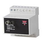 Dupline Feltbuss fiber modem, for DIN-skinne montering, 4 moduler, 230VAC forsyningsspenning.