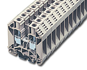 Gjennomgangsklemme/rekkeklemme for kabel med tverrsnitt 2.5-16 mm2. 2 tilkoblinger. Grå.