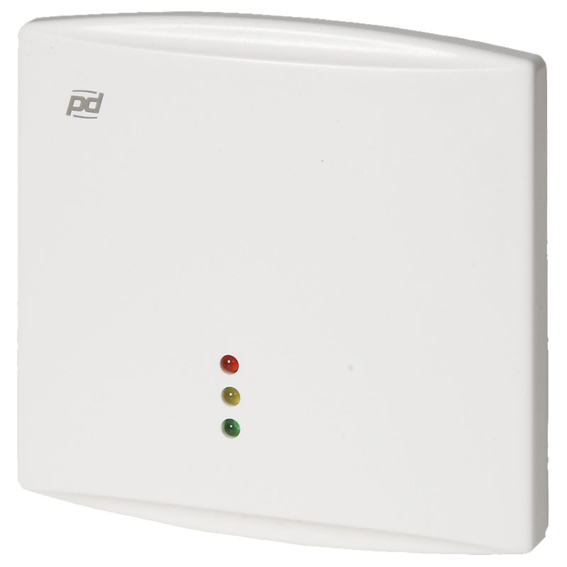 Romføler for måling av CO2 og temperatur. 24VAC/DC. CO2-konsentrasjonen angis etter trafikklyskonsept; Grønn (god), gul (akseptabel) eller rød (høy).