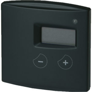 Romkontroller/temperaturregulator med Modbus RTU. Med + og – knapper.