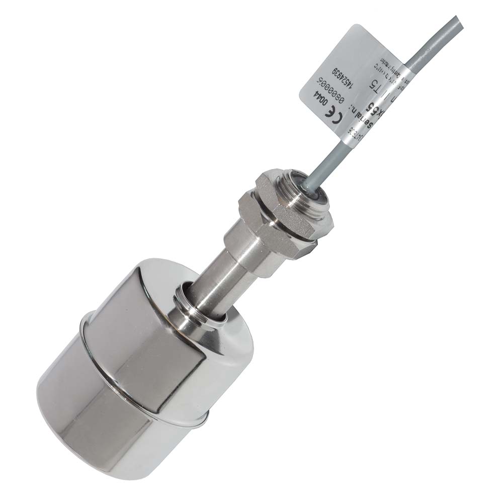 Nivågiver i rustfritt stål (AISI 316) med Ø53mm sylindrisk flottør. Kan tilkobles maksimal spenning på 230 VAC og 1 A strøm via 2m kabel. Utgangenen er Bistabil. EX-klasse