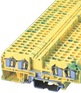 Jordklemme/rekkeklemme for kabel med tverrsnitt 0.5-4 mm2. 4 tilkoblinger. Gul/Grønn.