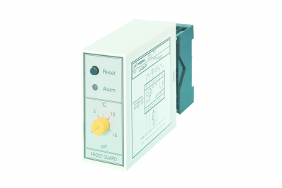 Frostsikringsrele/frosttermostat i 11-pins utførelse. Med justerbart setpunkt og hysterese. For PT1000-føler. Sikringsenhet for overvåking av at varmeflater ikke fryser til i ventilasjonsanlegg.