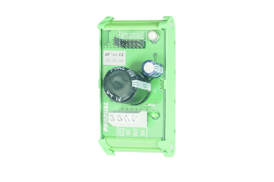 Strømforsyning som konverterer 24VAC/DC til 3,6-24VDC/1A. Elektronisk beskyttelse mot overbelastning. IP20. For DIN-skinne montering.