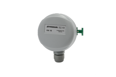 Duggpunktsbryter for måling av vannkondensering i kjølesystemer. Med kondenseringskontakten er det mulig å styre kjølevannsforsyningen når vannet begynner å kondensere på røret.