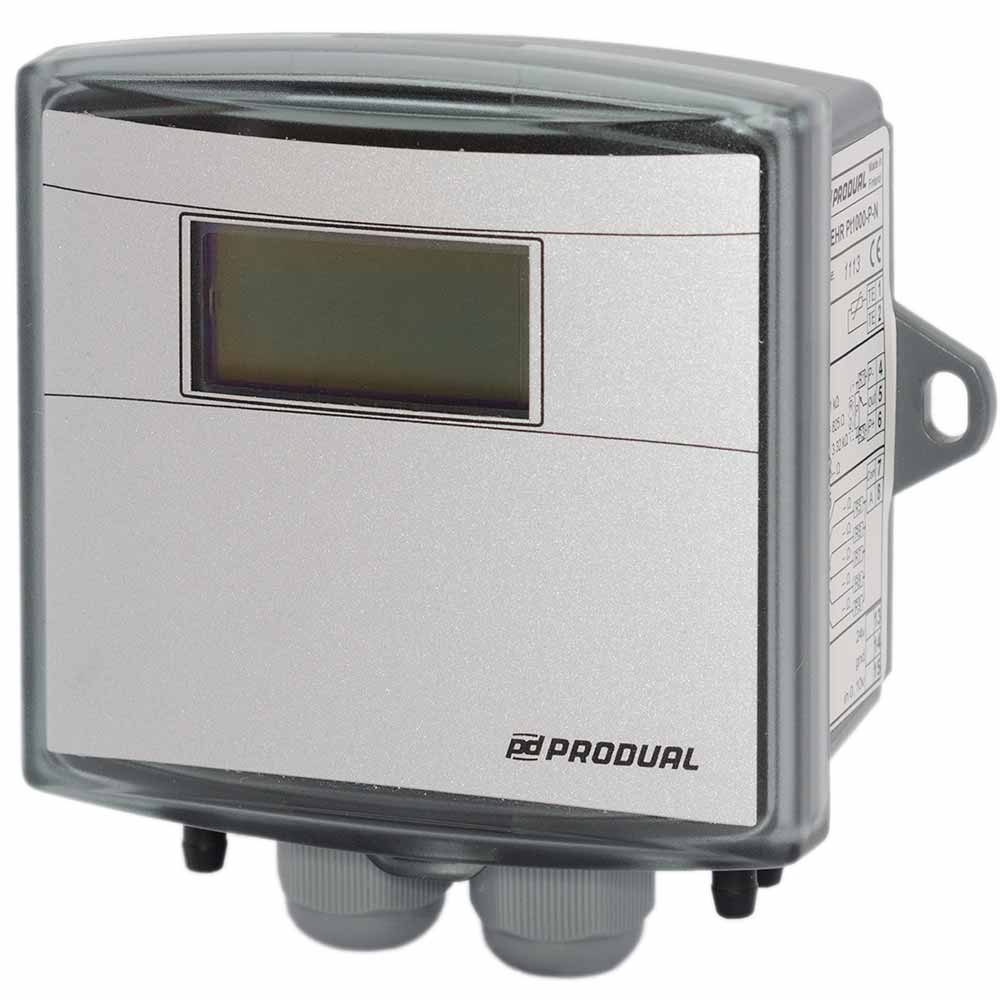 KPEL 9K-M-N Dobbel differansetrykktransmitter. Dobbel differansetrykktransmitter for luft. Trykkgiver med måleområde 0-9000Pa. Med display og Modbus. 2 univ. inn- og utganger
