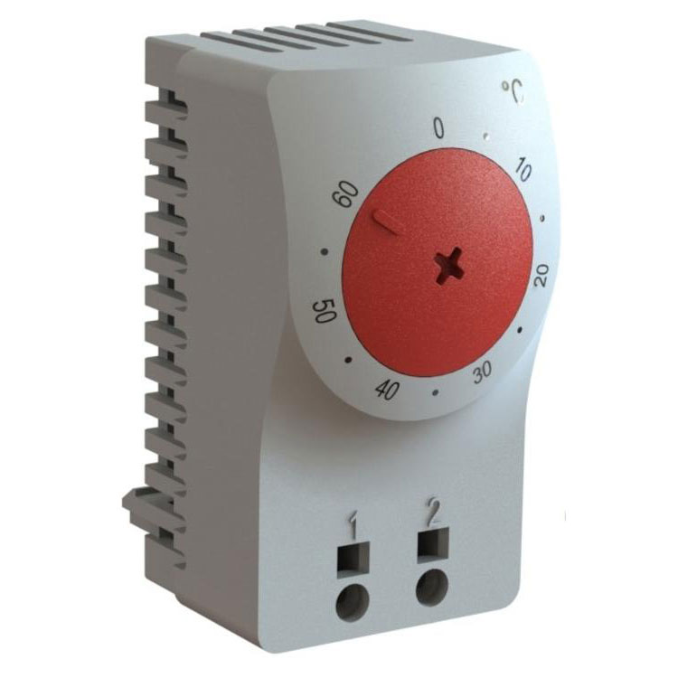 KTO11100.0-00 Termostat for varmeelement med DIN-skinne feste. Justerbart temperaturområde 0-60°C og 7°C hysterese. Tilkobling med Push-in klemmer for enkel og rask montering. Kontaktsettet er NC utførelse. Rødt ratt indikerer varmefunksjon.