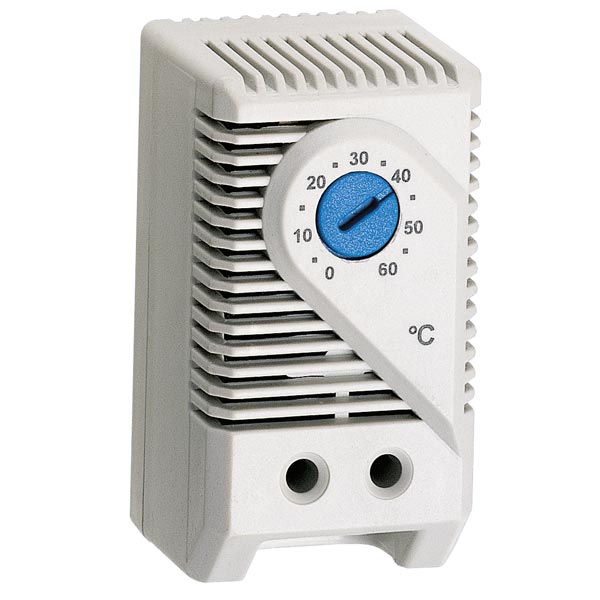 Termostat for kjøling. Justerbart temperaturområde 0-60°C. IP20. DIN-skinne montering. Blå. Stego.