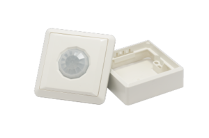 PIR-sensor 360° for detektering av bevegelse og tilstedeværelse for styring av ventilasjon og belysning. For innfelling. Mulighet for forsinkelse 2 sek, 2 min, 10 min eller 20 min. Dekningsområdet er ca 30m2 (ved takhøyde på 2,5m). NO/NC meldekontakt for vidreformiddling til SD-anlegg. Forhøyningsramme for utenpåliggende montering medfølger ikke.