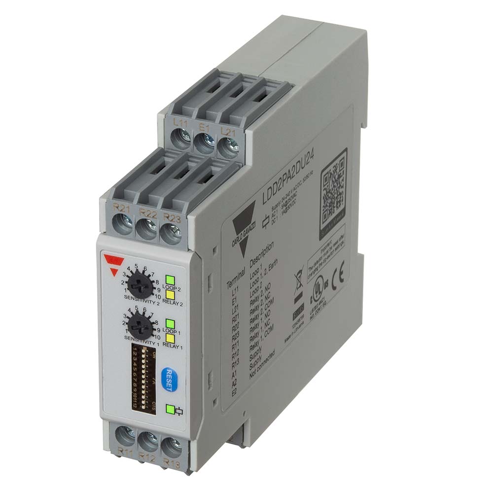 LDD2PA2DUG24 Sløyferele for DIN skinne montering. Med dobbel sløyfedeteksjon. Typisk bruksområde er deteksjon av kjøretøy i forbindelse med portstyring, bomstyring eller telling av kjøretøy. Releet har spenningsforsyning 24-240AC/DC.