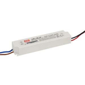 Strømforsyning for 1-fas 90-264 VAC. For LED. Sekundærspenning 12 VDC. Effekt inntil 18 W. For Panelmontasje. Fast kabel. Kapslet utførelse.
