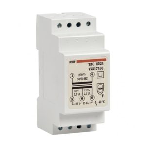 Modulær vernetrafo. Konverterer 230VAC til 24VAC eller 12VAC forsyning. 15VA eller 7,5VA.