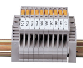 Merkeskilt for rekkeklemme type DK6, SK6 og SGK6. Vertikalt. Merking: 2 x 1-50. Høyde 8mm.