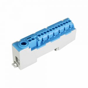 Fordelingsklemme. Blå faseklemme med 15 tilkoblinger. 1×22/16mm2, 2×4/2.5mm2, 12×2.5/1.5mm2