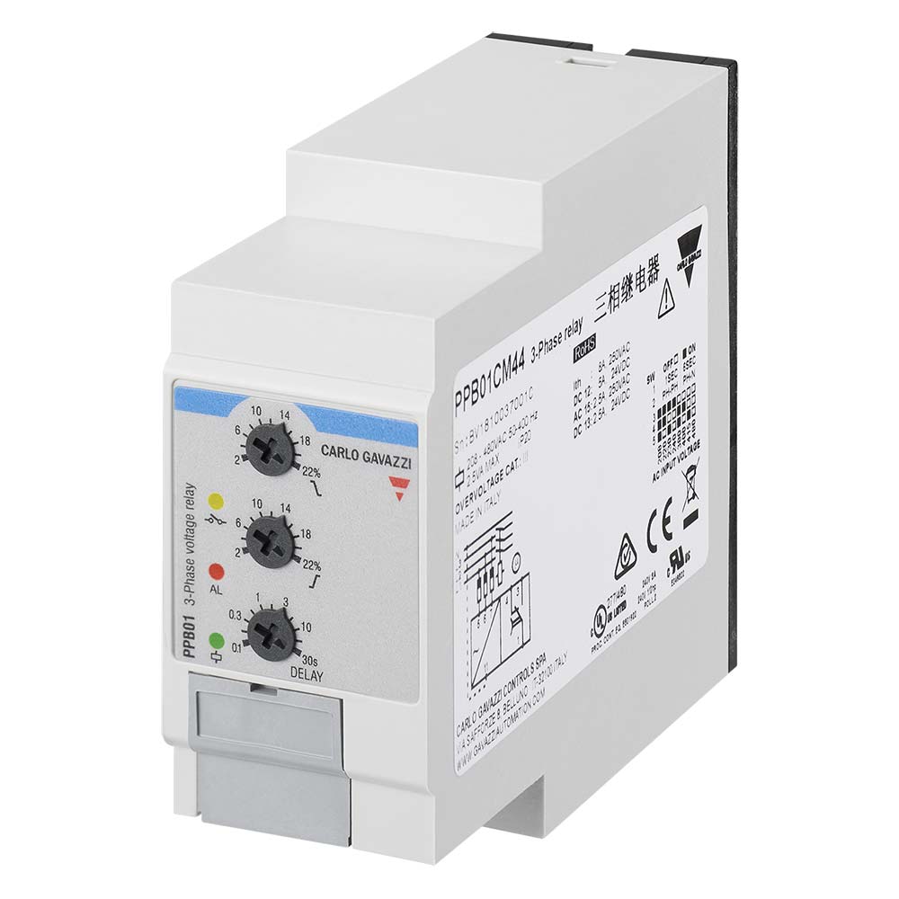 Nettovervåkningsrele for 3-fase AC med 1 releutgang. Relèet overvåker overspenning/underspenning + fasebrudd/fasefølge. For nominell nettspenning 208-240 VAC. Justerbar tidsforsinkelse. Releet er selvforsynt og er for 11-pins sokkel.