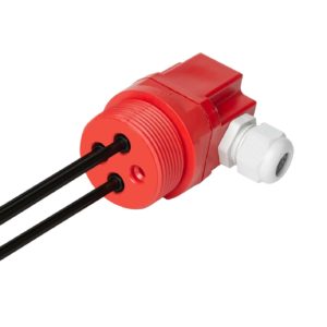Nivåføler/nivåsensor med 3 elektroder. Standard elektrodelengde er 100 cm. Kan kappes til ønsket lengde. Følerhodet har 1 1/2″ rørgjenger. Skrutilkobling med nippelinnføring. Polyethylen isolasjon.