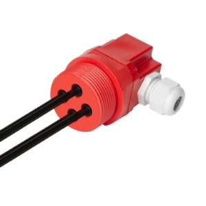 Nivåføler/nivåsensor med 4 elektroder. Standard elektrodelengde er 100 cm. Kan kappes til ønsket lengde. Følerhodet har 1 1/2″ rørgjenger. Skrutilkobling med nippelinnføring. Polyethylen isolasjon.