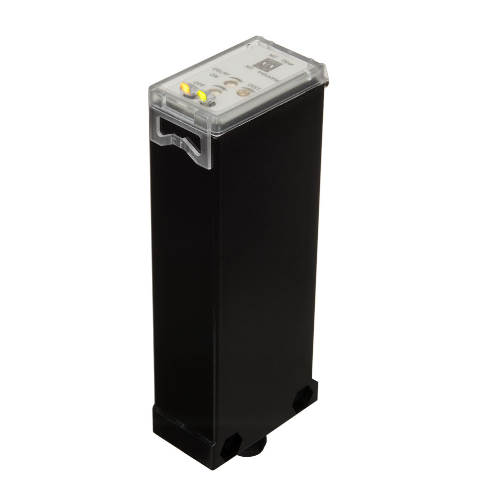 PD112CNB25BPM1 er en bakgrunnsavblendet fotocelle med lang rekkevidde. Den har M12 pluggtilkobling, og leveres i et rektangulært hus på 112x45x25 mm i forsterket kunststoff. Den er meget anvendlig i applikasjoner der lang avstand og bakgrunnsavblending er et behov. Fotocellen har en testinngang for dørmodus som er designet for å kunne sjekke sensorfunksjonen fra en dørkontroller eller PLS. Valgbar PNP/NPN og NO/NC på utgangen. Den har 2 valgbare moduser innebygget; “Door” for kontroll av dører og porter, og “Industrial” for generelt bruk.