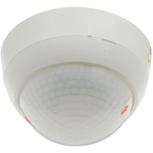 Tilstedeværelsesdetektor for utenpåliggende montasje i tak. Bruksområde er rom med stor takhøyde. Elnummer: 1405221