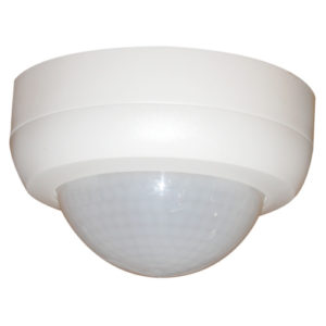 Bevegelsesdetektor for utenpåliggende montasje i tak med en kanal til styring av lys. Bruksområde er store områder med lav takhøyde. Elnummer: 1405218